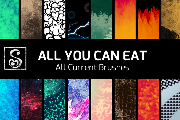 This pack holds ALL of my current brush packs. The included packs are: 2 Spoopy, Adventurer's Pack, Alchemy, Art Class, Bananbas, Birds of a Feather, Bristol, Brittle, Brushie Brushie, Bubbles, Canvas, Cephalopod, Chunky Paint, Cloud, Color Shift, Creamy, Disease, Drips, Dual Tone Hair, Environment, Face Paint, Fade, Foliage, Free Doodles, Free Pack, Fur, Fursona, Fuzzy, Gel, Gemstone, Glitter and Glam, Glitter Space, GOREgeous, GOREmet, Grime and Grit, Grungey Paint, Hentai, Ice, Inks and Pencils, Invisible Ink, Ito, Kodokushi, Koritsushi, Landscape, Lexicon, Magic, Magical Girl, Map, Metals, Mixed Patter, Monster, Mythos, Natura, No Guts No Glory, Odds N Ends, Oil and Ink, Paintball, Painter, Painterly Fur, Painterly Leaves, Painter Patter, Patch, Plant, Plantacles, Pride, Pride Party, Rag N Bone, RAWvishing, Real Fur, Real Fur Dual Tone, Rural, Sai Watercolor, Saucy, Screentone Dots, Screentone Lines, Screentone Patterns, Second Magic, Second Space, Shapes, Shine, Shuffle, Sketchy Fur, Skin, Skin 2, Small Paint, Smooth, Snack, Space, Square, Steven Universe, Stitch, Stitch, Stitches and Lace, Stylized Fire, Susai, Tech, Texture, Texture Blending, Textured Hair, Third Skin Pack, Third Space, Two Tone Hair, Urban, Varied Textures, VR Tentacles, Water, Watercolor, Yagellonica Embroidery, Yagellonica Fasteners, Yagellonica Large Enbroidery, Yagellonica Metal Decor
