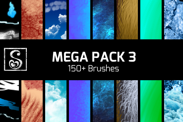 Contains the Cloud, Ice, Sketch Fur, Mixed Patter, Second Magic, Chunky Paint, Disease, and Glitter Space packs. Will be updated with more packs in the future until it reaches 1500 or so brushes.