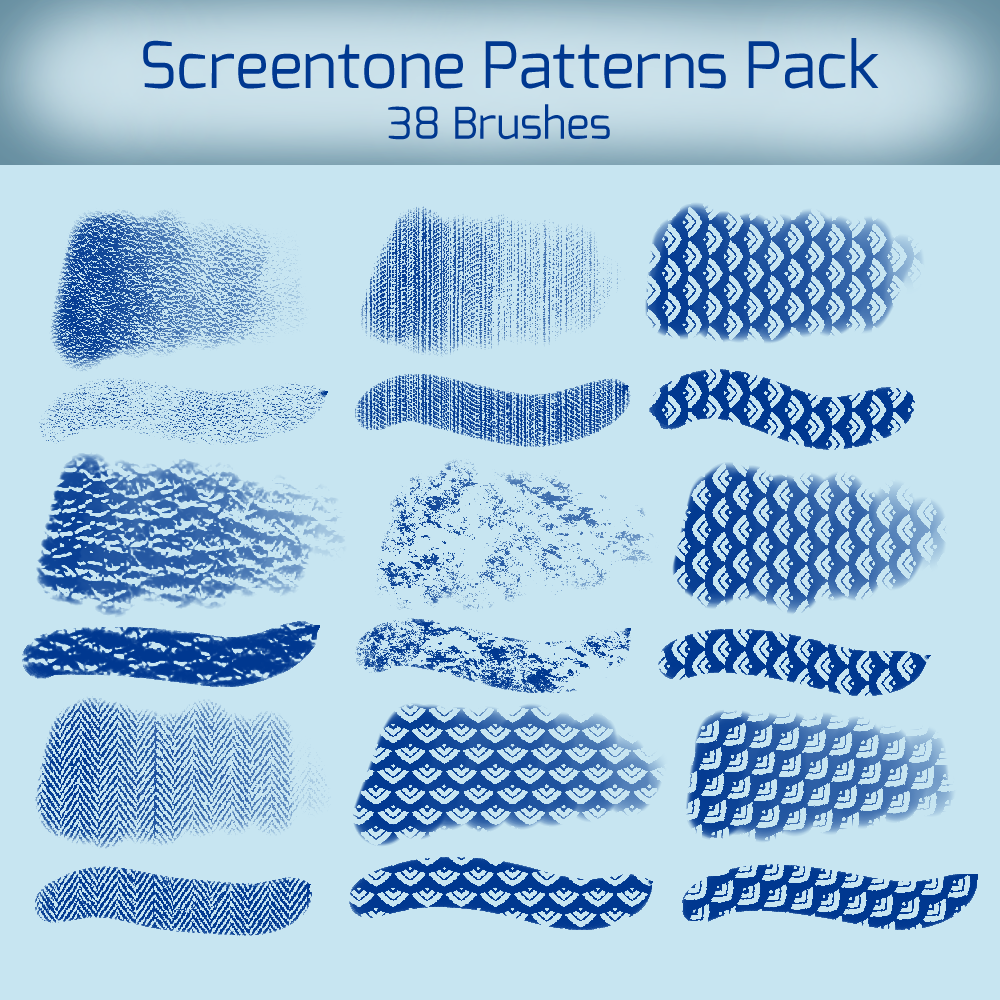 A series of Screentone brushes with various patterns for Manga Studio 5/Clip Studio Paint.
